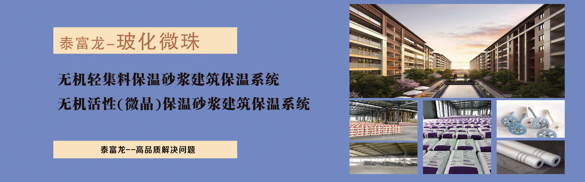 泰富龍自2006年成立以來,始終專注致力于石膏基與水泥基干粉砂漿領(lǐng)域及建筑節(jié)能領(lǐng)域產(chǎn)品的研發(fā)、生產(chǎn)、銷售和干粉建材在工程實踐中的應(yīng)用。
